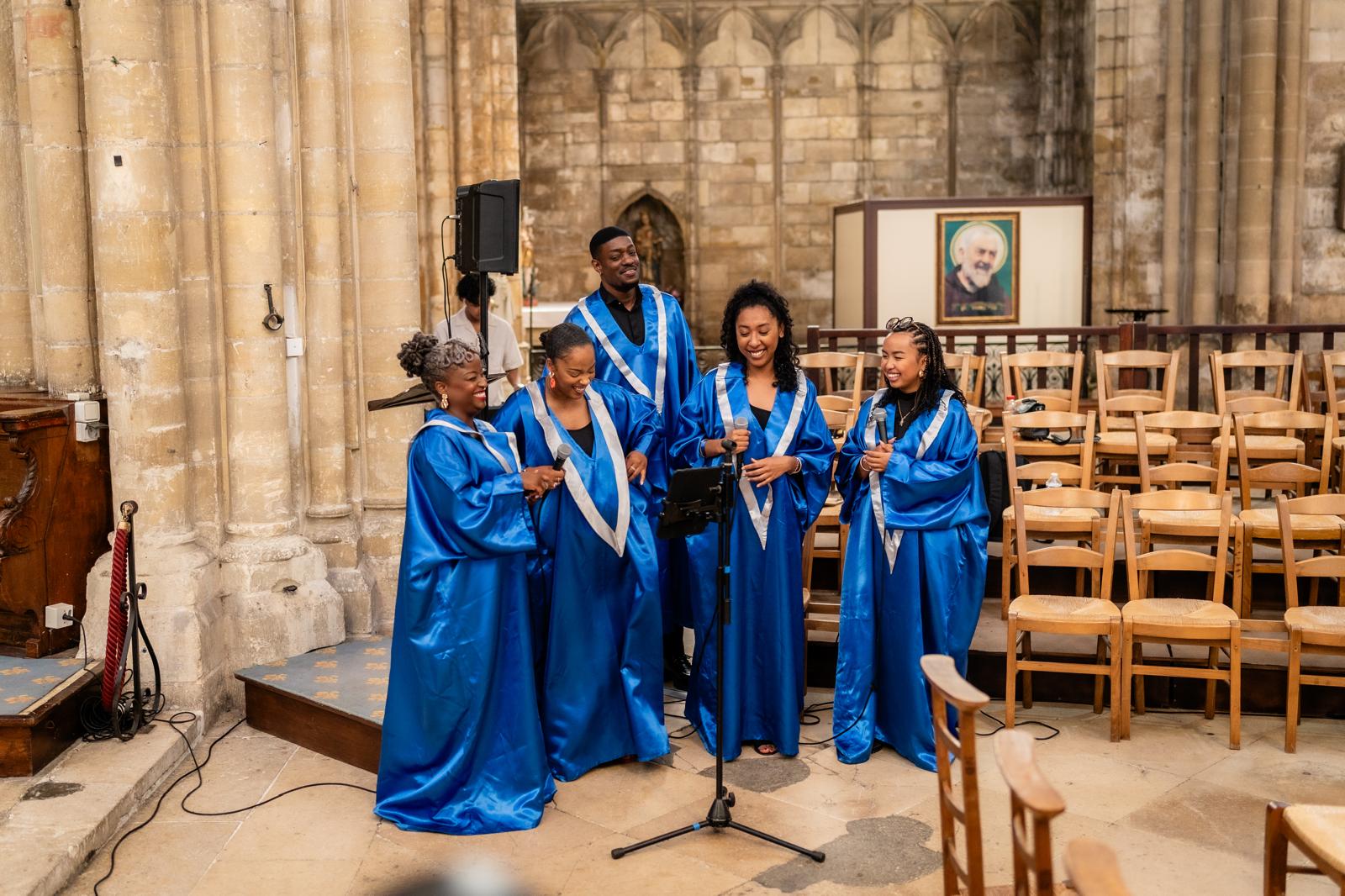 Nous avons été comblé par la prestation lors de notre cérémonie religieuse. Des voix exceptionnelles, des visages radieux, un professionnalisme au top. Tout était parfait vous laissez un souvenir inoubliable pour nous et toutes les personnes présentes y compris le Père Alphonse très émus par l’interprétation de The Goodness of God Merci à toi Bryan et félicitations pour cette magnifique chorale Au plaisir de vous revoir lors d’une représentation en île de France